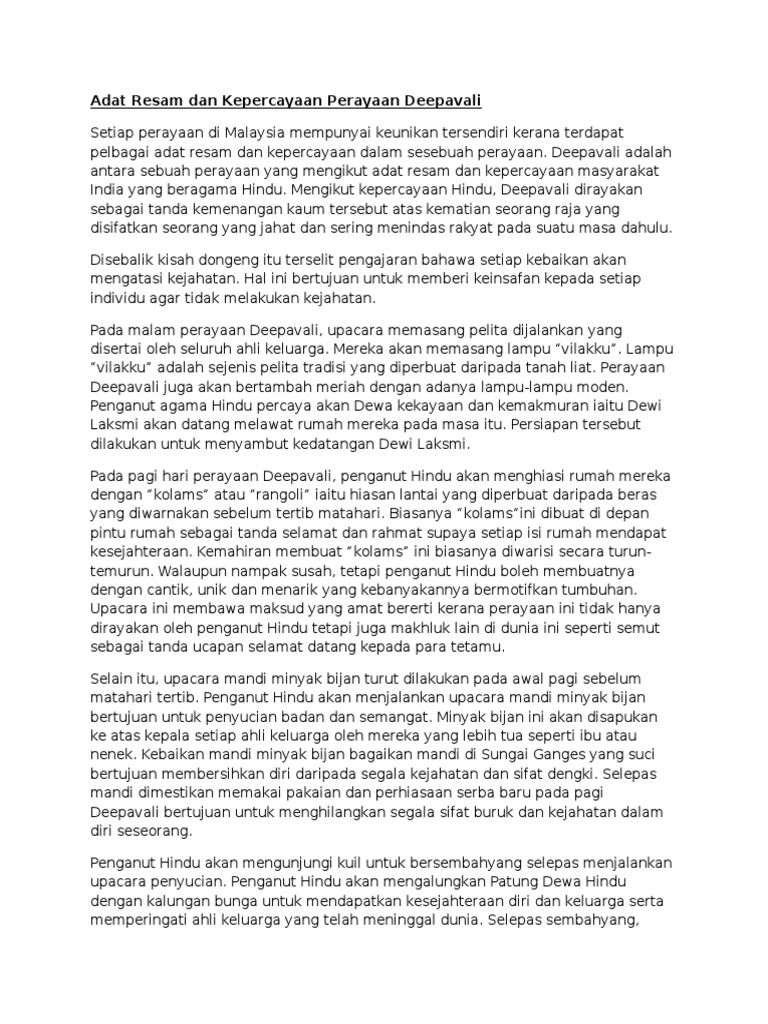 125121319 Adat Resam Dan Kepercayaan Perayaan Deepavali Docx