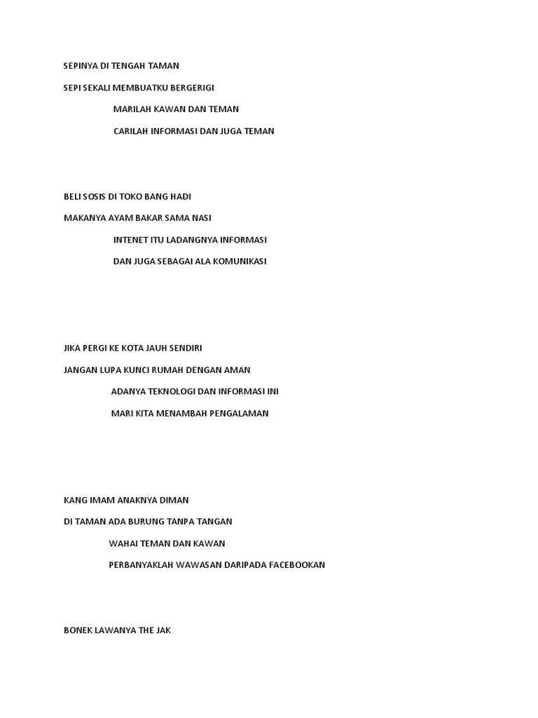 Maklumat Tambahan Dalam Korpus. Hanya dengan memiliki sebuah komputer peribadi yang. Pergi ke Ipoh membawa ketupat Membawa bersama keropok roka Teknologi maklumat banyak manfaat Mari bincangkan buruk baiknya.