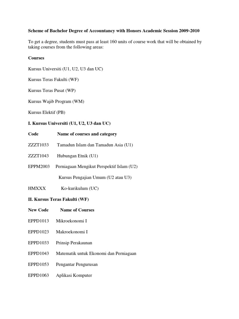 Scheme Of Bachelor Degree Of Accountancy With Honors Academic Session 2009 2010