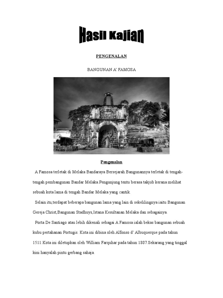 Oleh itu saya mesti menghargai dan memelihara warisan dahulu kala. Gambar kota a famosa kota a famosa maklumat sejarah kota a famosa tempat pelancongan malaysia tempat percutian menarik This entry was posted on Tuesday October 7th 2008 at 648 pm and is filed under travel malaysiaYou can follow any responses to this entry through the RSS 20 feed. Saya telah banyak memperoleh maklumat tentang sejarah Kota A Famosa ini yang kian dilupakan masyarakat kini.