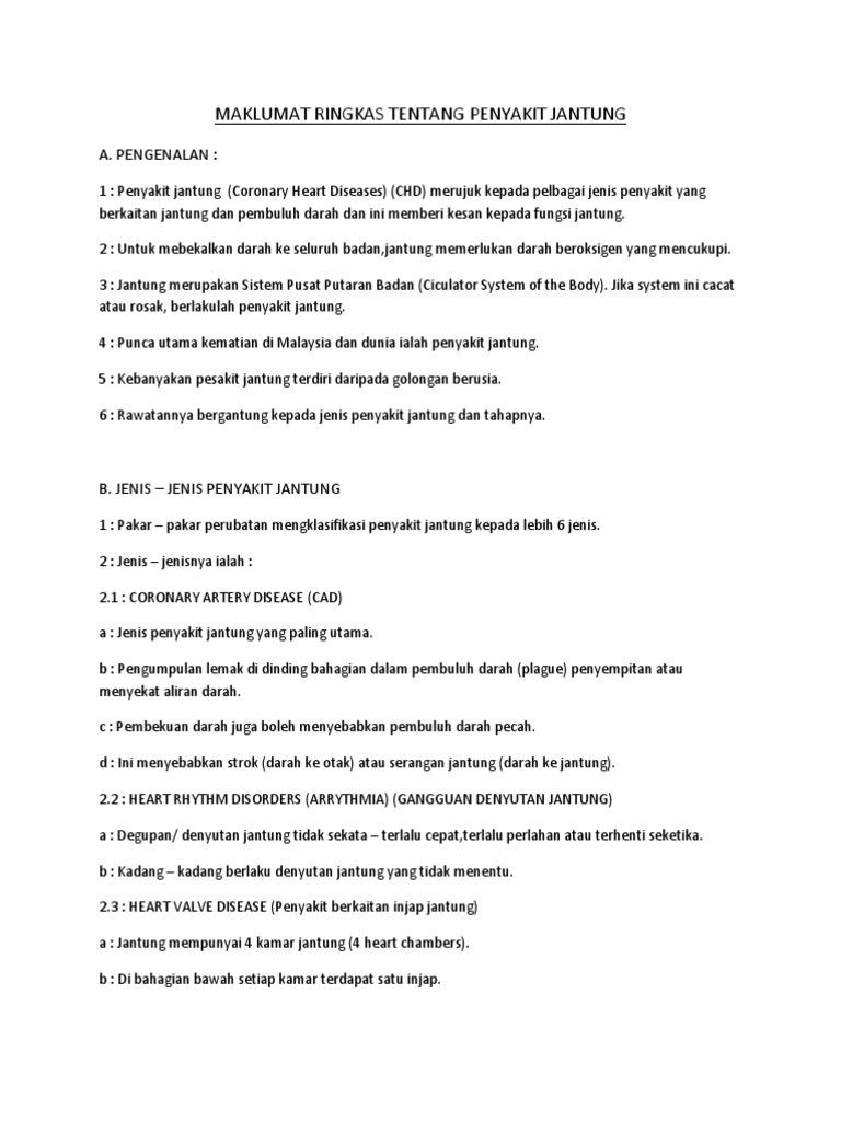Penyakit jantung koronari penyakit yang berlaku pada kawasan salur darah yang menuju ke jantung. Posted on December 8 2012 December 8 2012 by admin. Ia adalah ujian asas yang bagus untuk perbandingan pada masa hadapan.